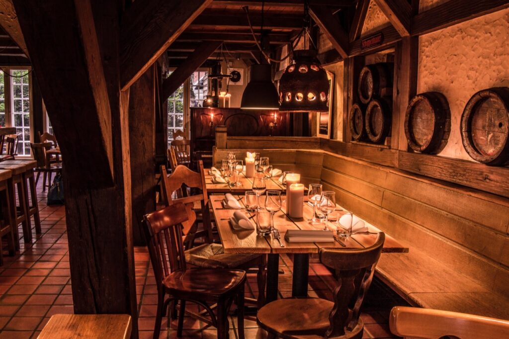 Gleich gegenüber der Hamburger Speicherstadt, in einem historischen Fachwerkgebäude aus dem Jahre 1633, befindet sich seit 1983 das urige Restaurant Schoppenhauer. 60 gemütliche Sitzplätze und ein rustikaler Tresen laden zum Verweilen ein. Genießen Sie die unnachahmliche Atmosphäre unseres Speichers: Noch heute können Sie die dicken Eichenbalken auf massiven Holzstützen mit Kopfbändern auf sich wirken lassen. Passend zu diesem einzigartigen Ambiente verwöhnt Sie unsere Küche mit deutschen regionalen und saisonalen Speisen.