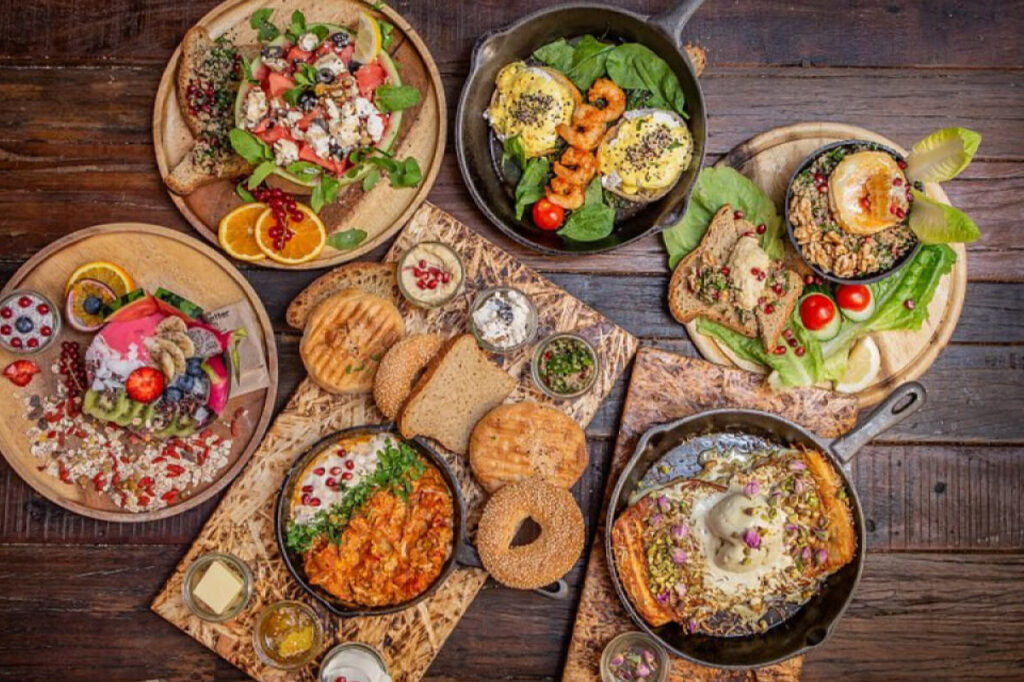 Modernes Café mit internationalem Brunch und gemütlicher Atmosphäre