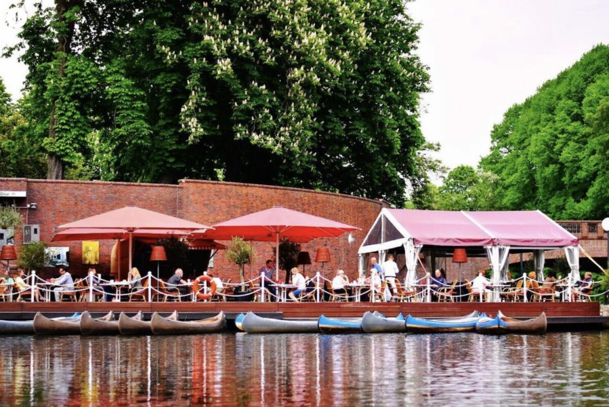 Ein wunderschöner Ort direkt am Goldbekkanal mit eigener Kanuvermietung. Kulinarische Köstlichkeiten und Erfrischungen direkt am oder auf dem Wasser. Die Strapazen des Alltags abstreifen und bei einem kühlen Drink und ein paar Leckereien in stillvollem Ambiente Sommer, Sonne, Terrasse und Wasser genießen, während ein zarter Wind über unsere Köpfe hinweg sich den Weg in die Blätter am Ufer sucht.