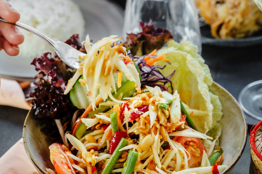 Unsere Rezepte wurden von Generation zu Generation weitergegeben und mit den besten Zutaten aus Thailand verfeinert. Jedes Gericht wird mit Sorgfalt und Leidenschaft zubereitet, um Ihnen ein echtes Stück Thailand zu bieten. Ob aromatische Suppen, würzige Currys oder süße Köstlichkeiten – lassen Sie sich von der Vielfalt und Tiefe unserer Thai-Küche verzaubern und erleben Sie eine kulinarische Reise in das Land des Lächelns.