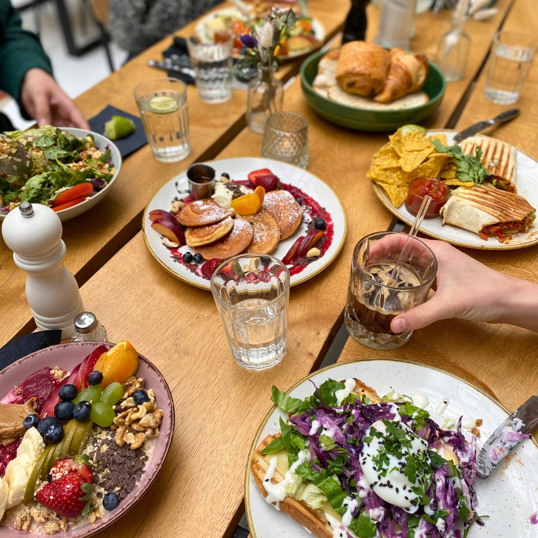 Guter Kaffee, kühle Drinks und vegetarische Fusion Küche. Vom leckerem Brunch mit pochierten Eiern, über selbst gebackenen Kuchen bis hin zu Sandwiches und Bowls, servieren wir einfache, aber kreative Küche. Wir machen den ganzen Tag über frischen Kaffee und selbstgemachte Limos. Am Abend servieren wir viele verschiedene Drinks.