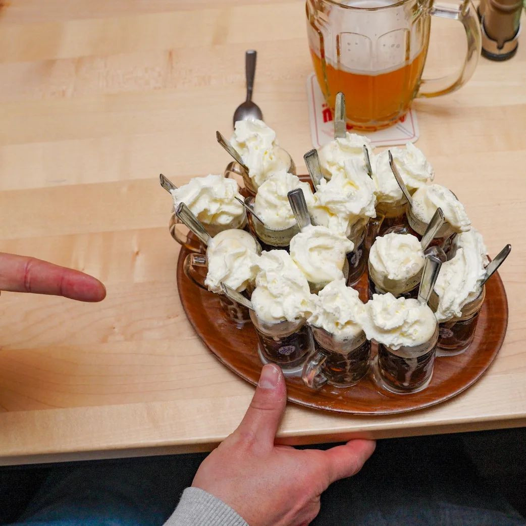 Und wenn der Abend sich dem Ende neigt, aber das Bier noch besonders gut schmeckt oder die Diskussion noch nicht abgeschlossen ist, gibt es noch einen „Schnitt“ – ein bewusst nicht ganz voll eingeschenktes Bier – bevor es nach Hause geht.