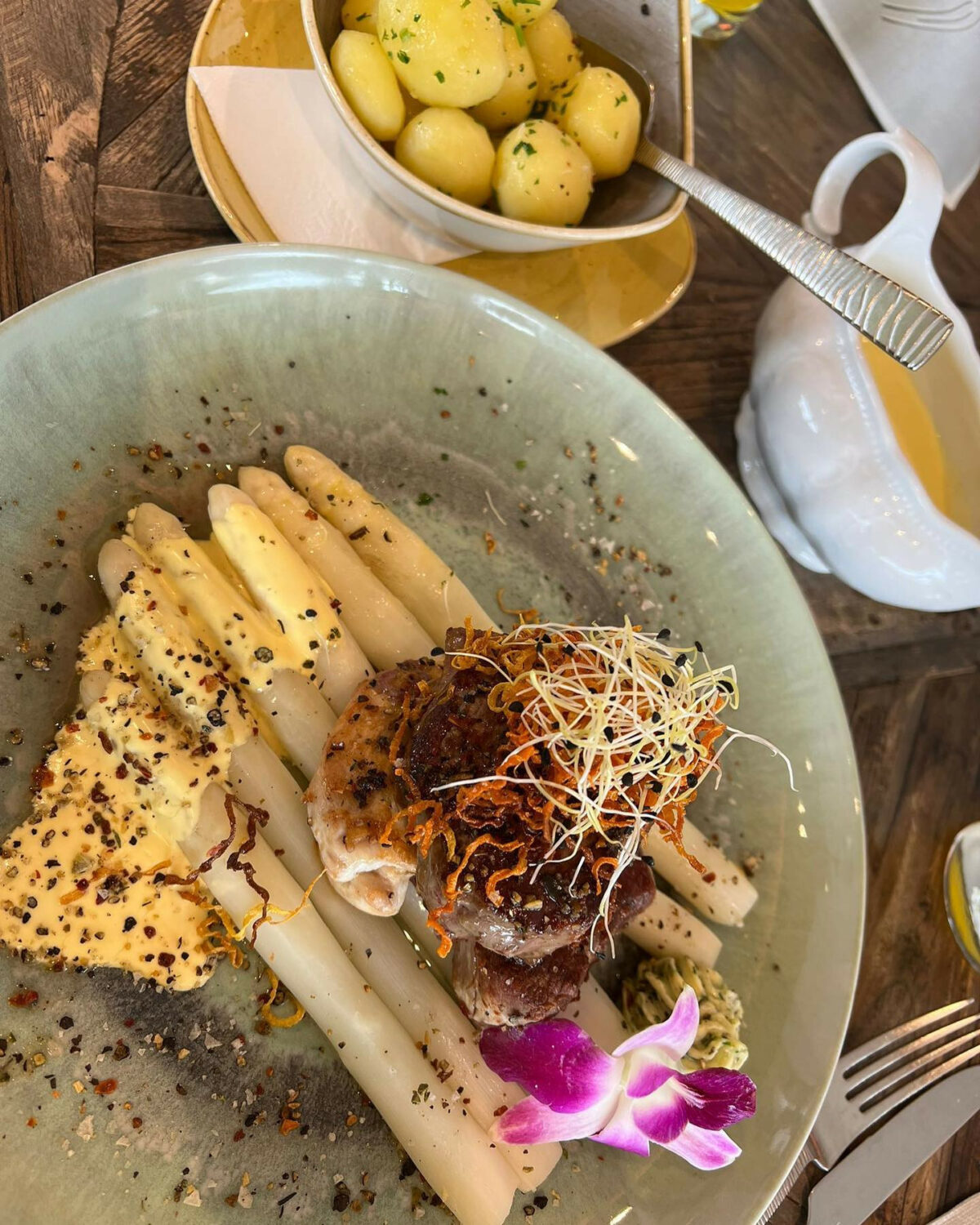 Genießen Sie nicht nur die ausgezeichnete Küche und köstliche hausgebackene Torten, sondern auch das hochwertige Ambiente mit einem ganz besonderen Charme. Die komplette Inneneinrichtung stammt aus dem renommierten Hause Rivièra Maison. Möbel und Wohnaccessoires von Rivièra Maison können hier auch im Lifestyle Store Restaurant erworben werden.