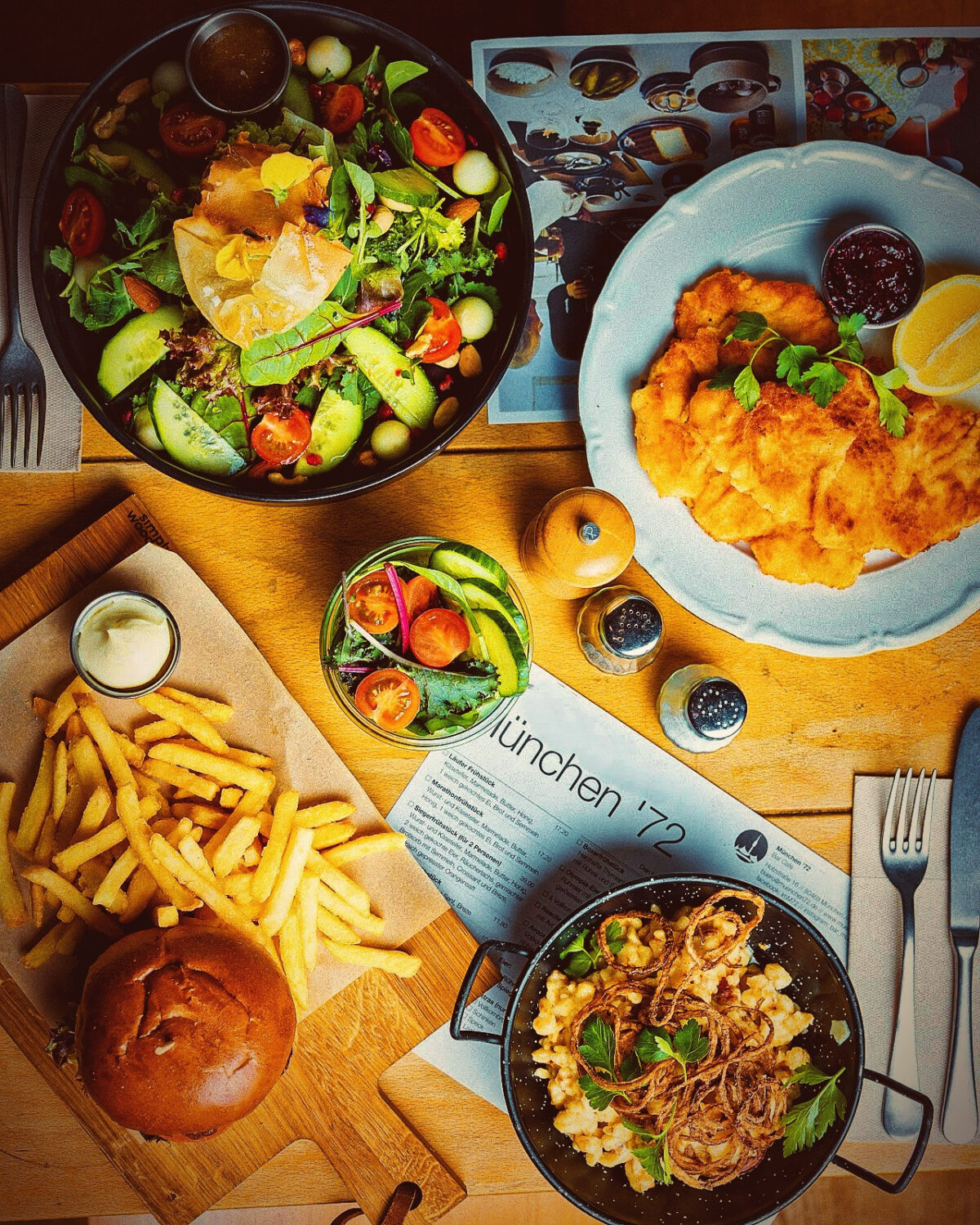 Hier kommen Freunde zusammen! Das München 72 liegt direkt am Holzplatz, mitten im Herzen des bunten Glockenbachviertels und im brandneuen Schanigarten mit kunterbunten Retro-Möbeln, farbenfrohen Sonnenschirmen und prächtigen Blumen ist es der ideale Ort um das Treiben im bunten Glockenbachviertel zu bestaunen.