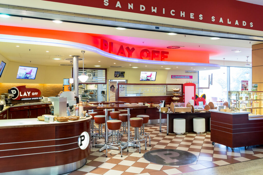 Vom typischen Frühstücksbuffet mit Pancakes und Ahornsirup, über eine große Auswahl an Burgern, frischen Salaten, American Fingerfood und Pizza, bis hin zu regionalen Gerichten – hier findet jeder Gast sein Lieblingsgericht. In der Kombination mit Sportübertragungen, die von jedem Platz aus live erlebt werden können, wird jeder Besuch zum Erlebnis. Auch die kleinen Gäste sind willkommen: Neben einer bunten Kinderkarte stehen Hochstuhl und Malsachen bereit.