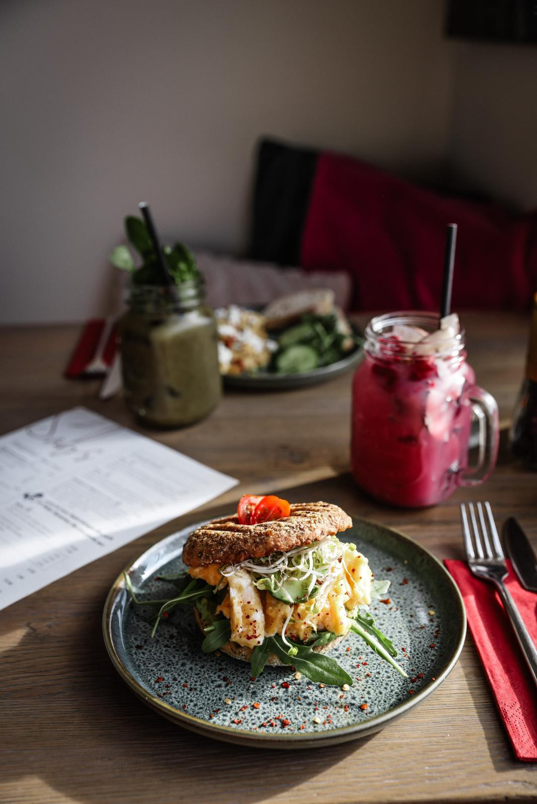Willkommen in unserem modernen Café, wo Genuss und Gemütlichkeit aufeinandertreffen! Hier bieten wir eine köstliche Auswahl an leckeren Bagels, die perfekt mit unseren hausgemachten Aufstrichen harmonieren. Unsere Smoothies sind nicht nur erfrischend, sondern auch voller gesunder Zutaten, die dir einen Energieschub geben. Probiere auch unsere bunten Bowls, die mit frischem Obst, knackigem Gemüse und nährstoffreichen Toppings gefüllt sind – ideal für eine ausgewogene Mahlzeit.