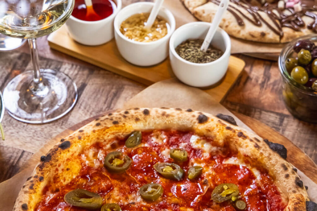 Neapolitanische Pizza mit ungewöhnlichen Toppings, 50 Stunden Teigruhe und Sauerteigkulturen, eine Hochwertige Weinauswahl aus Italien und Deutschland.