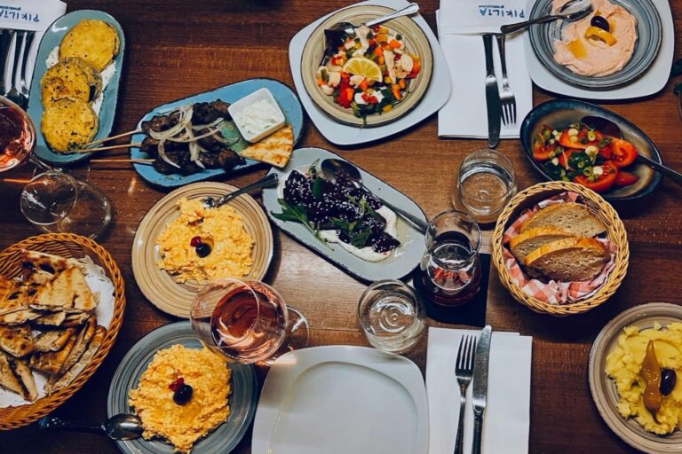 Hier werden vielseitige griechische Mezé-Spezialitäten serviert, die sich perfekt zum Teilen mit Freunden und Familie eignen.